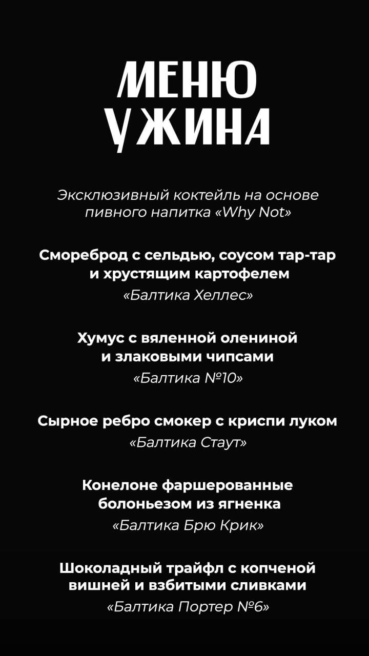 Шеф-повар BUTIN Максим Назаренко и бренд-амбассадор пивоваренной компании «Балтика» Алексей Бибиков собрали вечер, где всё крутится вокруг вкуса: эксклюзивный коктейль на основе пивного напитка Why Not, 5 авторских блюд и новая линейка пива в идеальных парах.